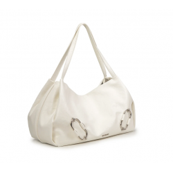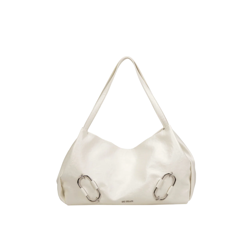 MODELLO Borsa a spalla in ecopelle vintage con logo frontale lettering, doppio manico, anelli decorativi, dettagli nikel